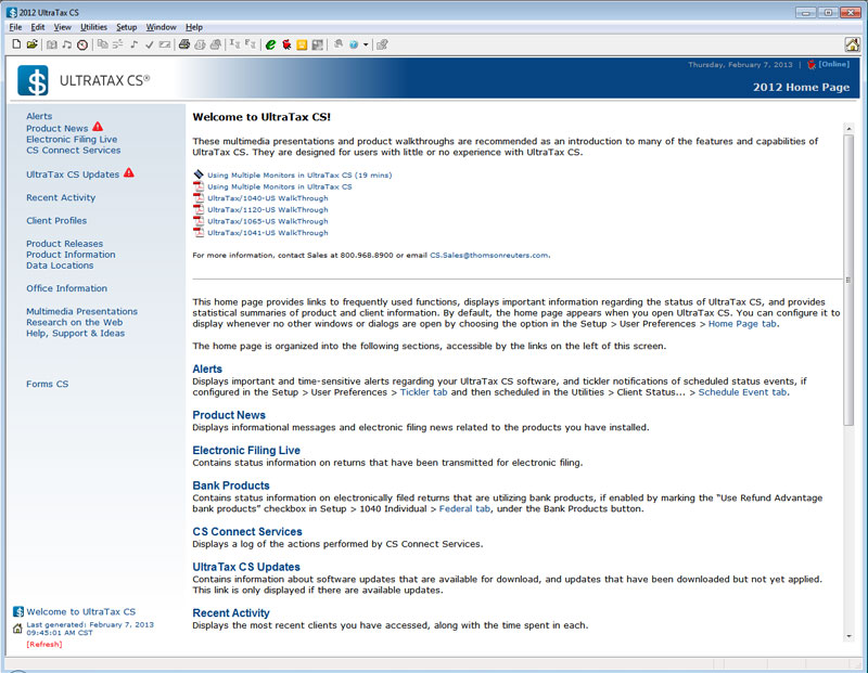 The home page of our professional tax software, UltraTax CS - click for more detail